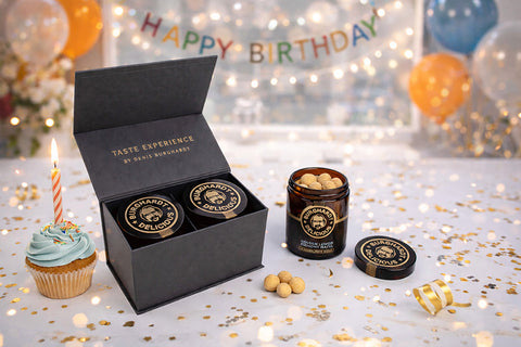 Ein Geburtstag ist ein persönlicher Meilenstein – und genau so sollte sich auch das Geschenk anfühlen. Unsere Burghardt Boxen sind dafür geschaffen, echte Freude zu bereiten und in Erinnerung zu bleiben. Statt kurzlebiger Geschenke schenken Sie hochwertigen Genuss: sorgfältig ausgewählte Spezialitäten, stilvoll verpackt in nachhaltigen Glasdosen und präsentiert in eleganten Boxen.