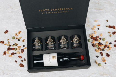 Jede Flasche wird sorgfältig ausgewählt, um perfekt mit unseren feinen Nüssen, Schokoladen und Delikatessen zu harmonieren – für ein Genusserlebnis auf höchstem Niveau.