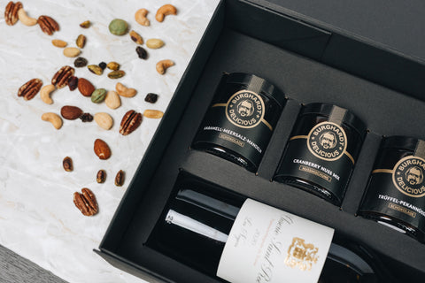 Weihnachten ist die Zeit des Schenkens – und des bewussten Genusses. Unsere Burghardt Boxen sind ideale Weihnachtsgeschenke für alle, die Qualität und Geschmack schätzen. Fein ausgewählte Spezialitäten, edle Glasdosen und eine hochwertige Verpackung machen jede Box zu einem Geschenk, das Eindruck hinterlässt.